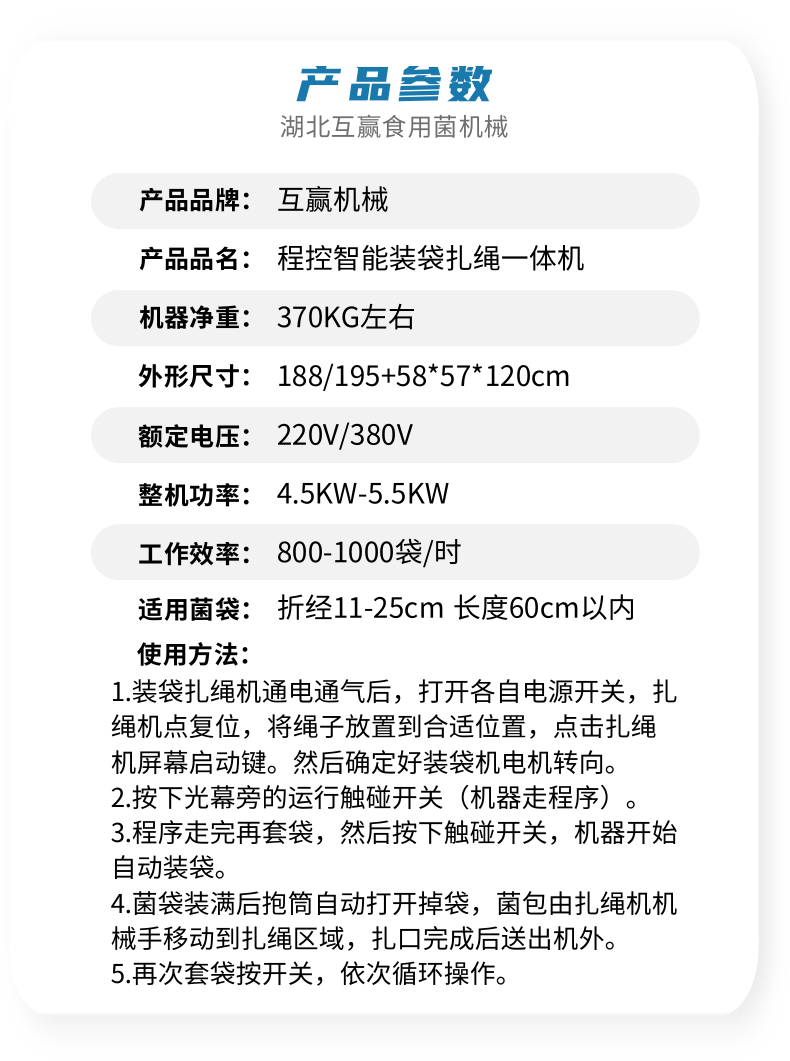 食用菌程控智能裝袋扎繩一體機(jī)